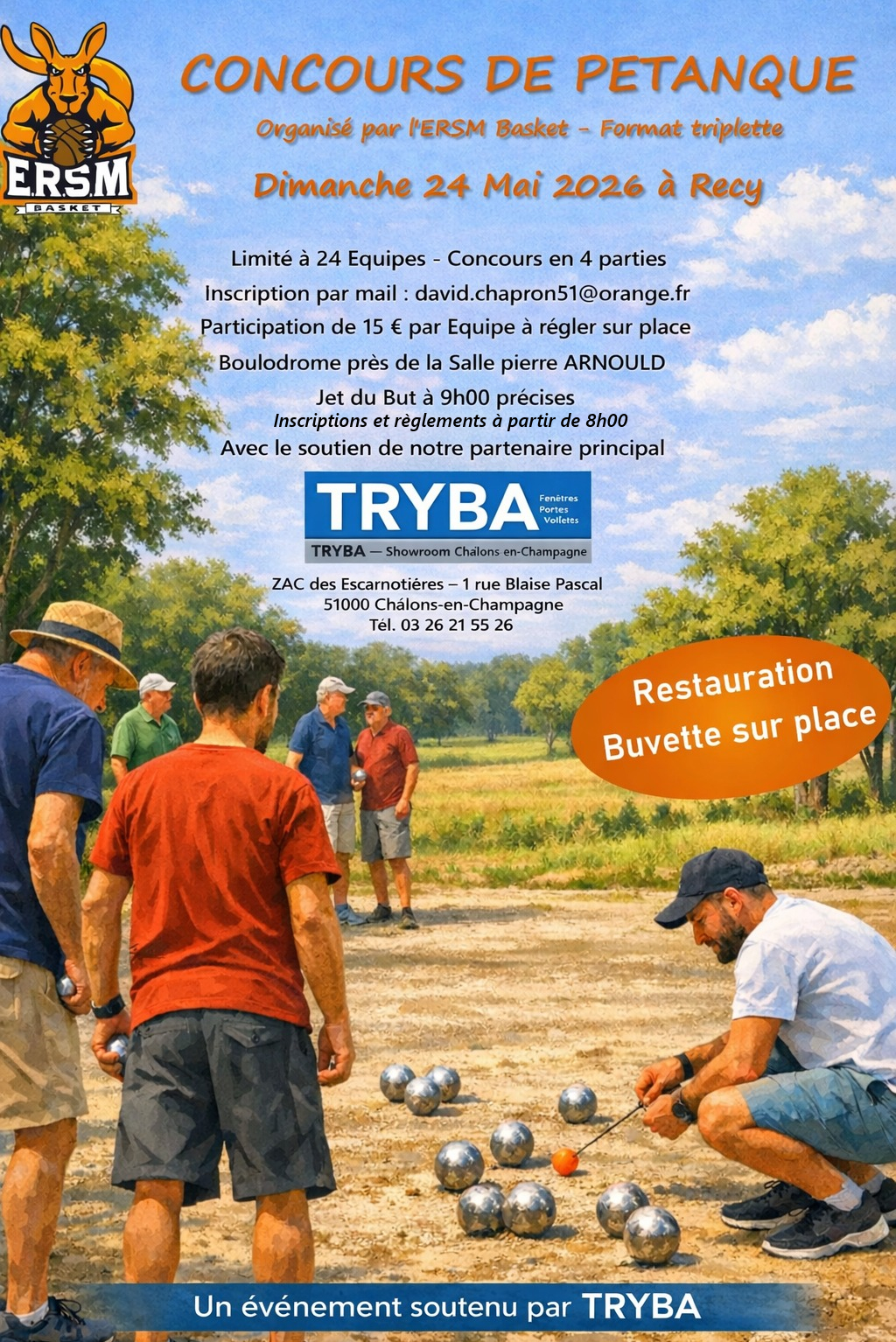 Avec le soutien de notre partenaire TRYBA, l'ERSM organise son tournoi annuel de Pétanque sur les terrains près de la salle Arnould.